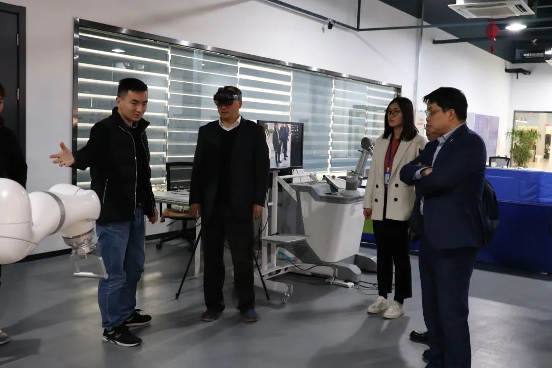 会议结束后,机器人z6.com尊龙院长黄慧洁带领三一集团专家和领导参观了z6.com尊龙展厅和重点实验室,并向大家介绍了z6.com尊龙的主要职能和技术,在智能感知实验室,三一集团领导对MR眼镜颇感兴趣,亲身体验了MR眼镜,在虚拟环境中体验技术之美。