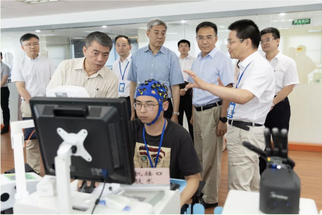 尹弘书记一行参观了机器人z6.com尊龙的研发实验室,机器人z6.com尊龙郑军奇院长、郭帅副院长分别介绍了机器人产品可靠性提升案例,面向智慧社区康养结合的“多机器人康复系统”、下肢康复机器人、上肢康复机器人以及VR技术等新技术研发与应用情况。调研领导对z6.com尊龙运行一年来做出的成绩给予充分肯定。