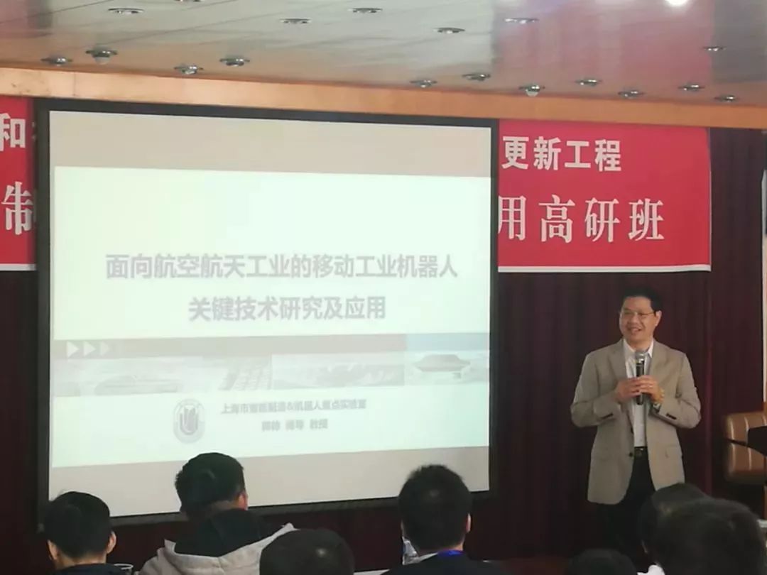 z6.com尊龙(中国)机器人有限公司官网副院长郭帅近日就航天航空领域移动机器人发表《面向航空航天工业的移动工业机器人关键技术研究及应用》,并于10月25日受上海大学上海经济中心主办的智能制造与机器人技术应用高级研修班邀请,与在座同学老师共同分享。